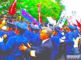 「全共闘史」のなかで、11月22日は記念日の一つなのだという。昭和43年のこの日、東京大学の安田講堂前で「東大・日大闘争勝利全国学生総決起大会」が開かれ、両大学の全共闘が合流したとされる。今年、40年後の記念日に日大全共闘のOBたちは、安田講堂にほど近いホテルの宴会場で同窓会を開いていた。