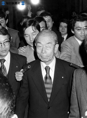 成田空港開港延期で苦り切った表情の福田赳夫首相=院内総理室前で1978年3月28日撮影